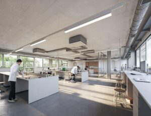 Le bâtiment HAUTE-TECHNOLOGIE de 9'400 m³ a été imaginé pour être aménageable et modulable au gré des preneurs. Le bien-être des occupants est au cœur des préoccupations des acteurs qui ont travaillé sur ce projet. Le bâtiment HAUTE-TECHNOLOGIE dispose de 3 niveaux hors-sol et de places de parkings disponibles en sous-sol.